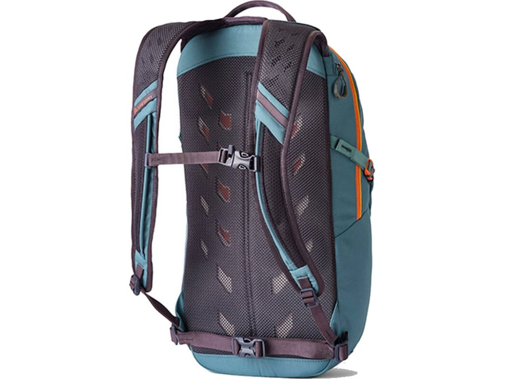 Priedušné ramenné popruhy s polstrovaním zo vzdušnej sieťoviny, hrudný popruh s prackou na ovládanie jednou rukou a pútka na vedenie hydratačnej hadice Priedušný zadný panels tvarovaným vetraním