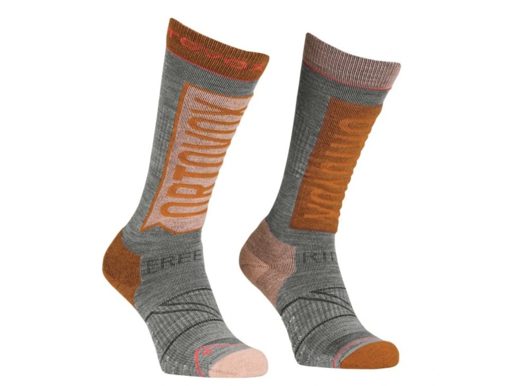 ORTOVOX Dámske dlhé ponožky FREE RIDE LONG SOCKS W autumn leaves - sivé/oranžové